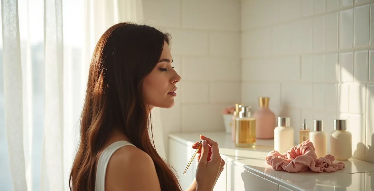 L’erreur fatale est de laver toute la chevelure à chaque fois. Les longueurs et les pointes, moins exposées au sébum, n’ont pas besoin d’un nettoyage intensif. La solution est le lavage ciblé, ou « micro-shampoing ». Cette technique consiste à n’appliquer le shampoing que sur le cuir chevelu, là où le sébum s’accumule. En massant délicatement les racines, vous créez une mousse légère qui, en coulant lors du rinçage, nettoiera suffisamment les longueurs sans les agresser.